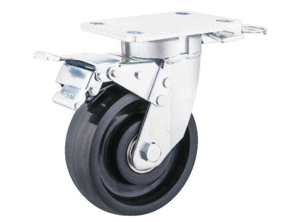 A7重型(橡膠系列)6公厘灰彈力橡膠輪-平底雙剎